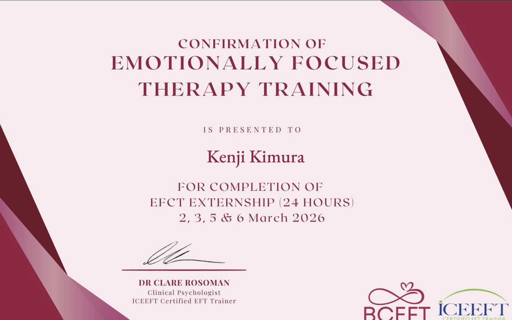 EFCT Trained Therapist (Externship completed)